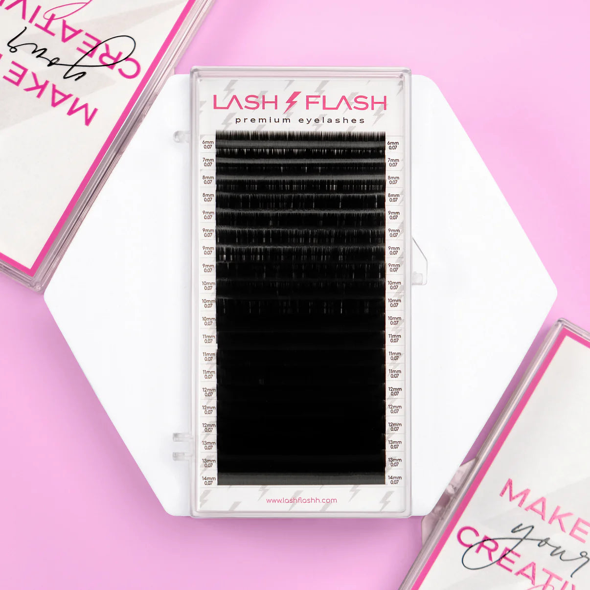 - each lash tray has an indicator label (length, curl, diameter).