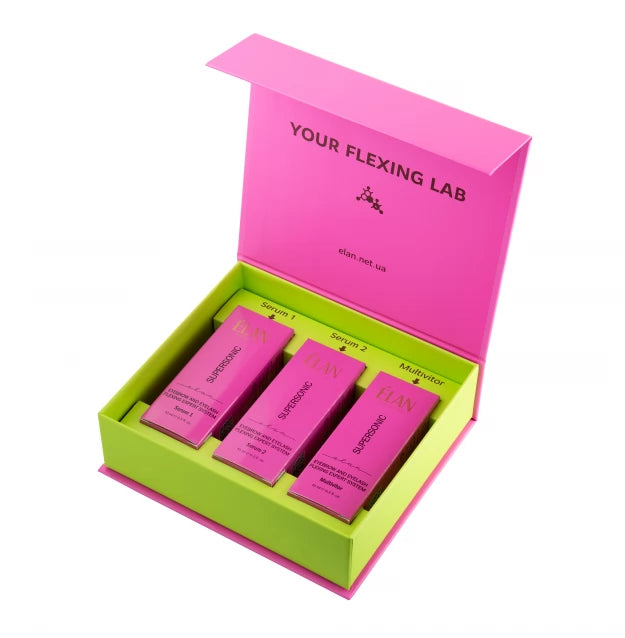 Професійний набір для нарощування вій "SUPERSONIC 2.0" складається з трьох продуктів - Serum 1 PINK, Serum 2 та Serum 3 Multivitor.